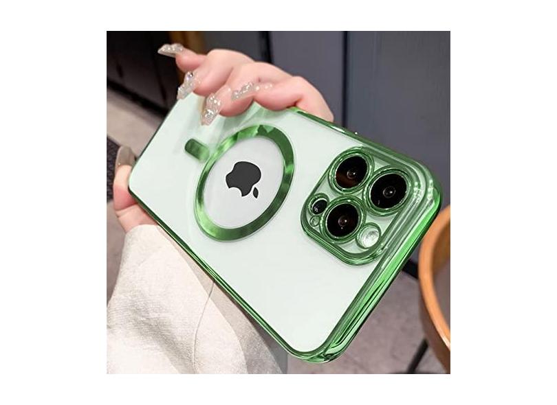 Luxo chapeamento claro magnético caso de carga sem fio para iphone 14 13 12 11 pro max x xr xs 8 plus capa de silicone macio, verde, para iphone 8
