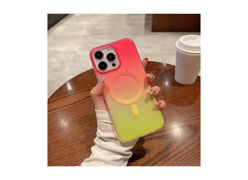 Luxo gradiente laser aurora capa magnética de carga sem fio para iphone 14 plus 13 12 pro max 11 capa de cor neon, rosa verde, para iphone 13