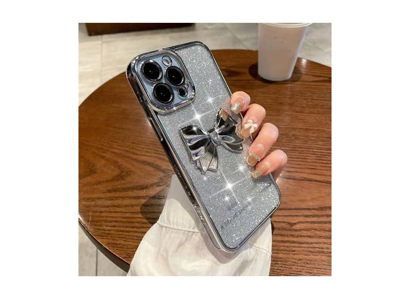 Luxo quadrado chapeamento bowknot glitter caso para iphone 13 12 11 pro max à prova de choque transparente bonito capa, prata, para iphone 11pro max