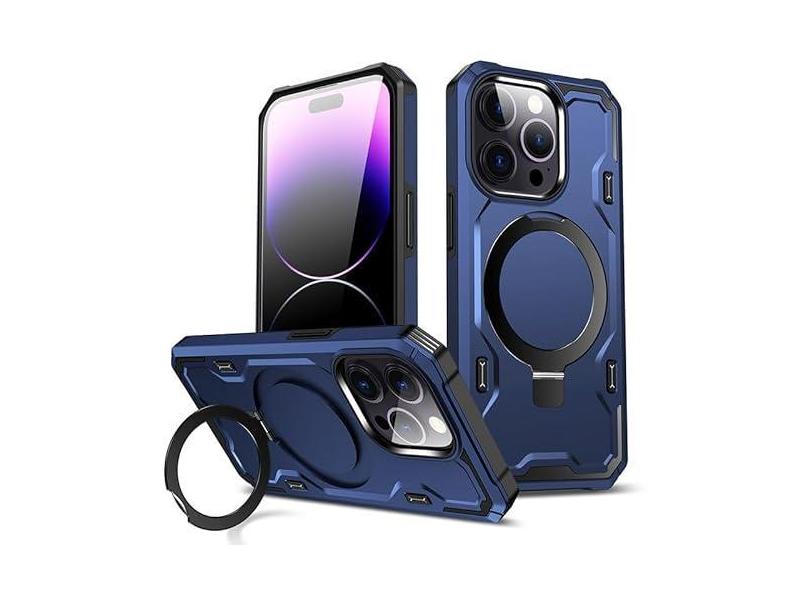 LXURY Capa à prova de choque para iPhone 15 Pro Max/15 Pro/15 Plus/15, capa de telefone com suporte magnético compatível com lentes de carregamento sem fio, azul, 15 Plus