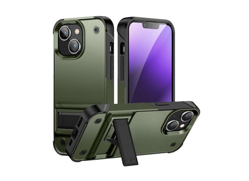 LXURY Capa para iPhone 15 Pro Max/15 Pro/15 Plus/15, capa à prova de choque de grau militar com suporte oculto, capa de proteção para câmera, verde, 15