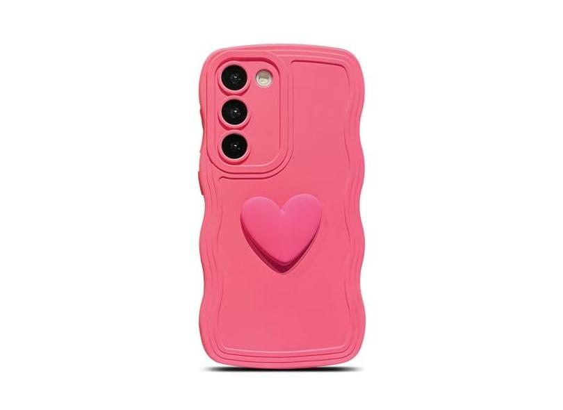 LYQZDT Capa compatível com Samsung Galaxy S23 Plus, capa fofa de cor sólida 3D com coração de amor, capa protetora com borda ondulada encaracolada à prova de choque para mulheres e meninas (rosa