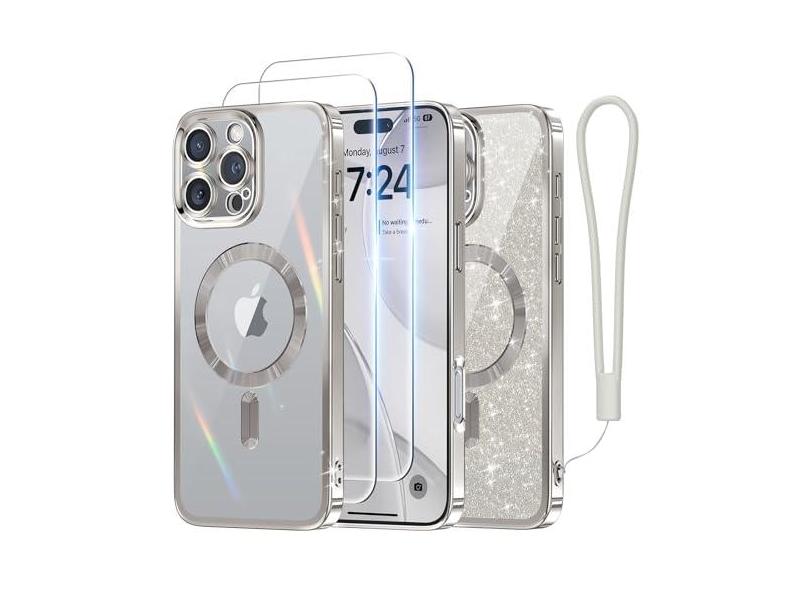 Meifigno Capa projetada para iPhone 16 Pro de 6,3 polegadas, [compatível com MagSafe] [2x protetores de tela] [cartão de glitter e alça de pulso] Proteção de lente surround projetada para iPhone 16