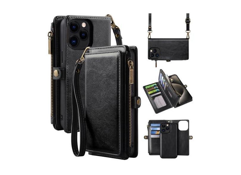 MInCYB Capa carteira para iPhone (6,7 polegadas) com suporte para cartão (mais de 12 compartimentos para cartões) - Capa de couro PU para mulheres e homens, carregamento sem fio, magnético destacável,