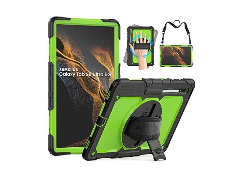MLZYUE Capa para Samsung Galaxy Tab S8 Ultra/S9 Ultra 14,6 polegadas, capa resistente à prova de choque de grau militar de 3 camadas para Tab S8 Ultra/S9 Ultra com alça giratória de 360°, suporte para
