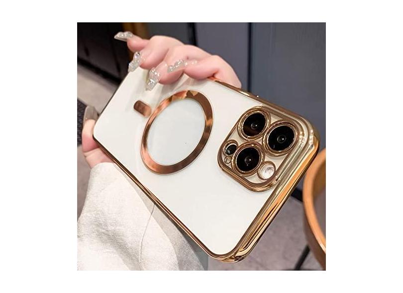 Moda chapeamento magnético para capa de carregador sem fio para iphone 14 13 12 11 pro xs max x xr 7 8 plus capa transparente de silicone, ouro, para iphone 8 plus