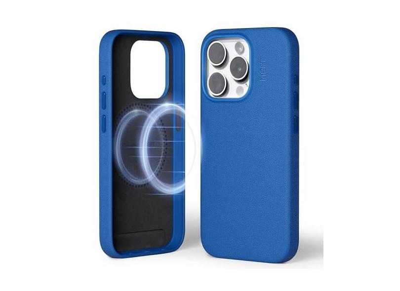 MOFT Capa protetora MOVAS de couro vegano macio e suave e antiarranhões, compatível com MagSafe, forro de fibra fina, capa magnética com anel de câmera elevada, safira