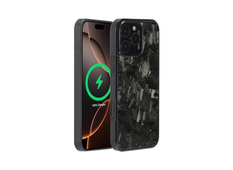 molzar Capa Grip Series para iPhone 16 Pro Max com fibra de carbono forjada real, anel magnético integrado para montagem magnética, compatível com carregadores e acessórios MagSafe, preto