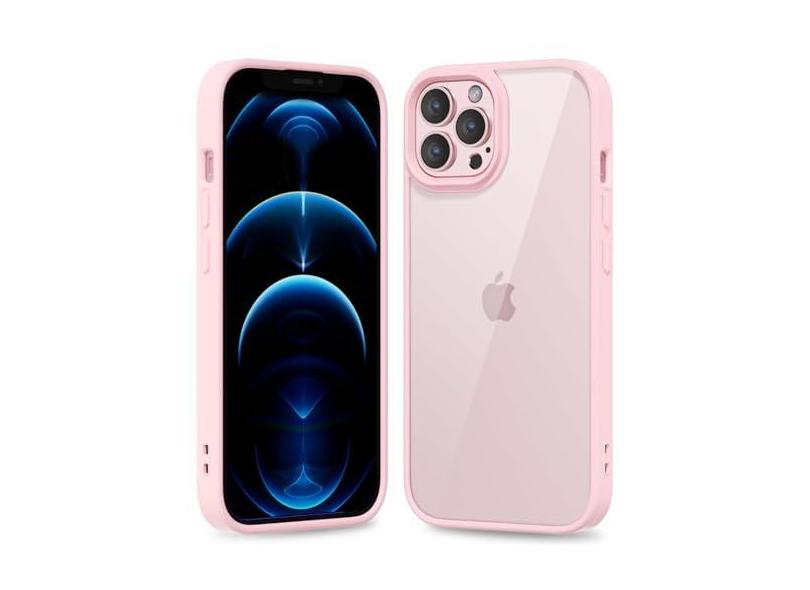 oakxco Capa fina e fina transparente para iPhone 12 Pro Max, capa rígida híbrida transparente de plástico e borracha de silicone macio, capa protetora leve acrílica não amarela para mulheres, rosa