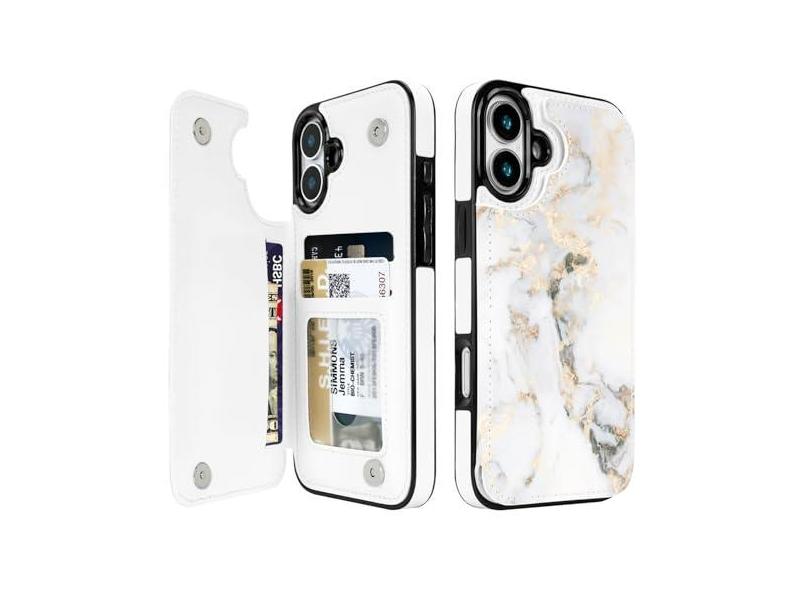 Obbii Capa carteira compatível com iPhone 16 de 6,1 polegadas com suporte para cartão, capa flip de couro PU, compartimentos para cartões, fecho magnético duplo e capa com bloqueio de RFID de 6,1