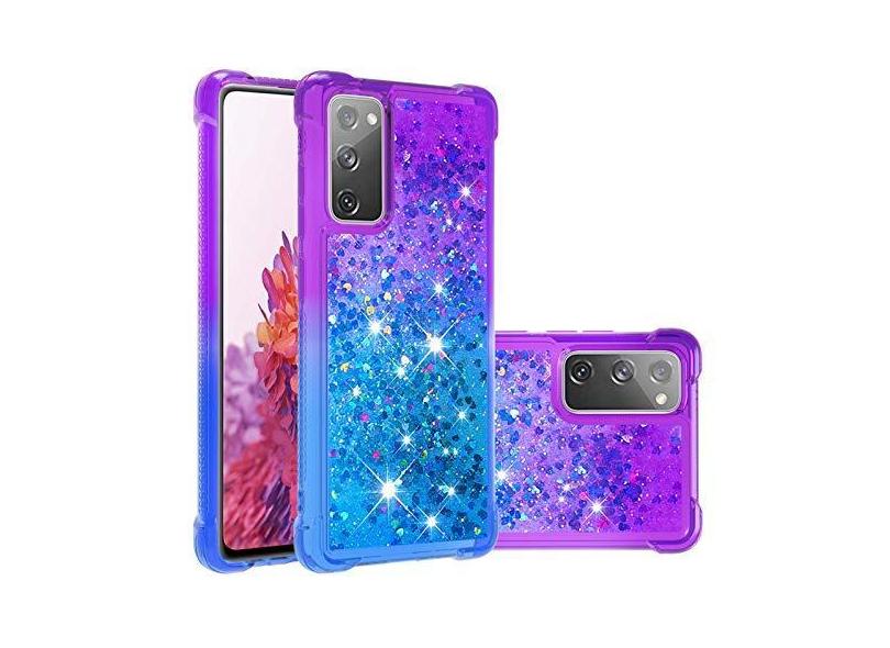OOPKINS Capa para Samsung S20 FE 5G com glitter líquido areia movediça para meninas mulheres brilhante flutuante amor coração capa transparente macio TPU à prova de choque para Galaxy S20 FE 5G