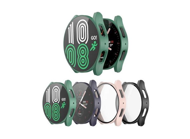 Pacote com 4 para Samsung Galaxy Watch 6 de 40 mm/44 mm, capa protetora de policarbonato rígido, película de vidro temperado, capa protetora resistente a arranhões para Galaxy Watch 6 de 44 mm