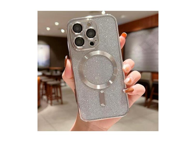 Para capa de telefone protetora de lente de galvanização para iPhone 15 11 12 13 14 Pro Max Plus Capa com brilho para carga sem fio, prata, para iPhone 11Pro Max