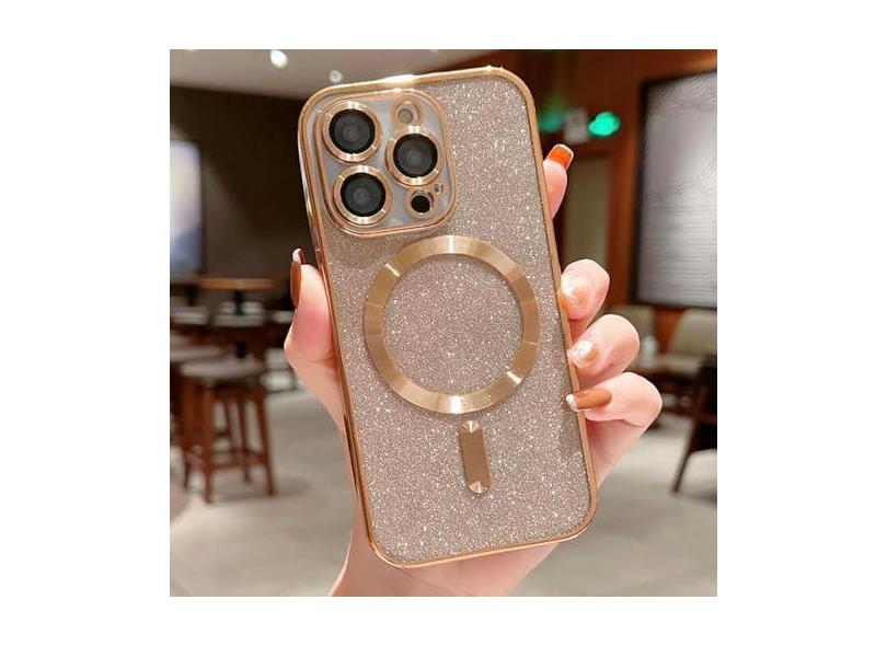 Para galvanizar lente protetor caso de telefone para iphone 15 11 12 13 14 pro max plus carga sem fio pára-choques glitter capa, ouro, para iphone 12 pro