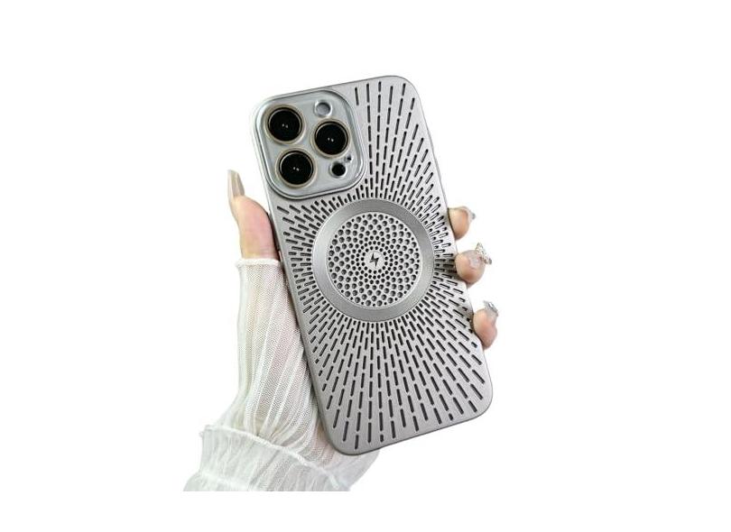 Para iPhone 12 13 14 15 Pro Max Capa de telefone respirável dissipação de calor malha concha sucção magnética capa de proteção de carregamento, cinza, para iPhone 15