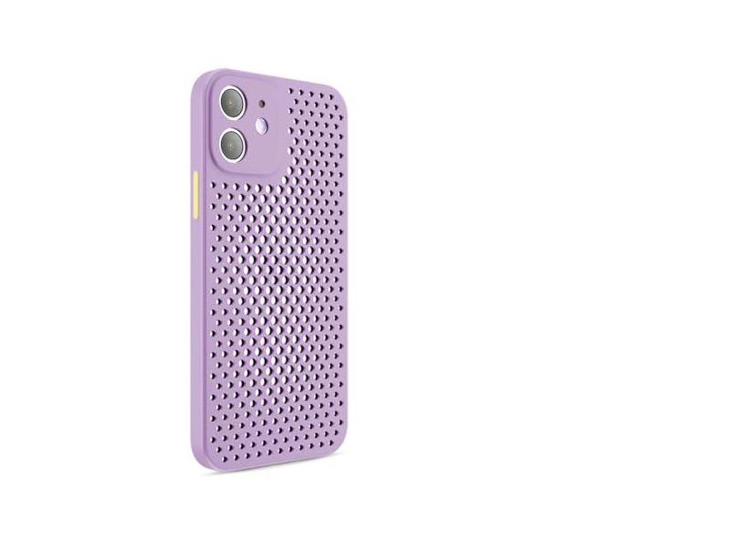 Para iPhone 13 12 Mini 11 Pro Max X XR 8 7 6 6s Plus Capa de telefone de malha respirável com furo oco e resfriamento capa macia anti-impressão digital, roxa, para iPhone 7 8