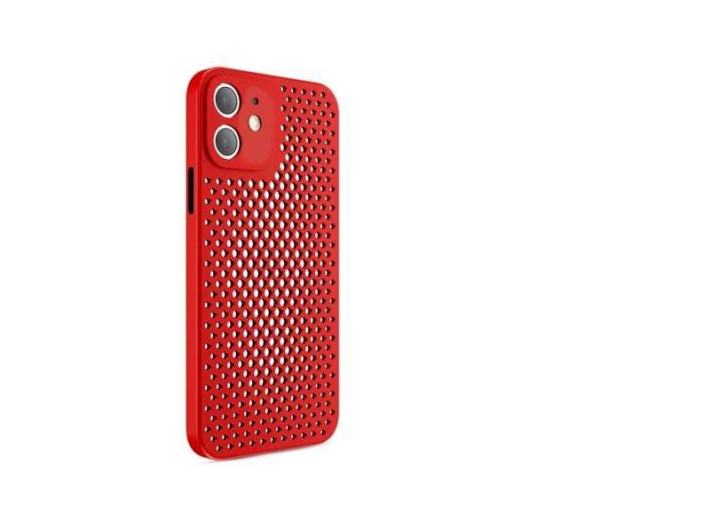 Para iPhone 13 12 Mini 11 Pro Max X XR 8 7 6 6s Plus Malha respirável capa de telefone com furo oco e resfriamento capa macia anti-impressão digital, vermelha, para iPhone 6 6s