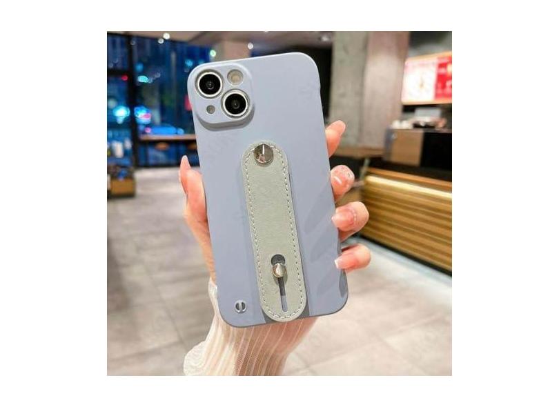 Para iPhone 14 Pro Max 13 Pro Max 12 Pro 11 Pulseira de couro de luxo sem moldura Capa de telefone com lente à prova de choque capa de suporte protegida, cinza, para iPhone 14