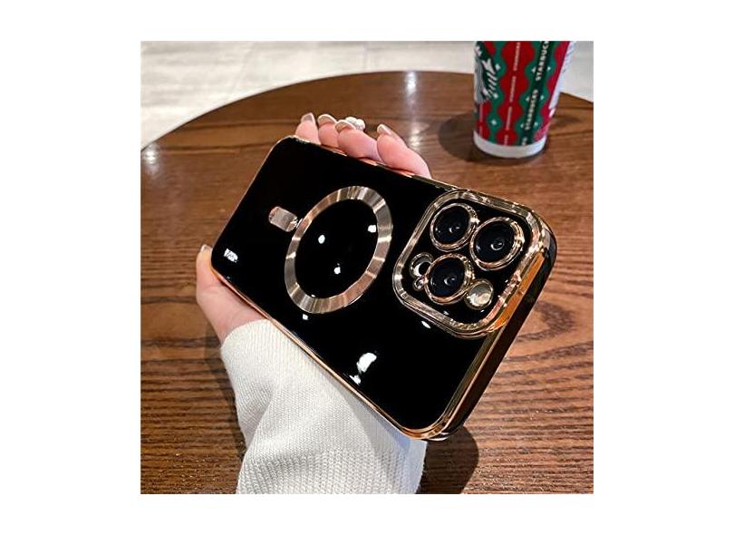 Para iPhone 15 Pro Max Capa de telefone com moldura quadrada magnética para iPhone 11 12 13 14 Plus Capa protetora de lente, capa magnética preta, para iPhone 12 Pro