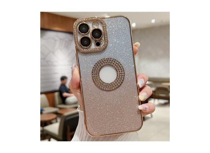 Para iPhone 15 Pro Max revestimento de luxo capa de telefone com moldura de diamante flash gradual para iPhone 11 12 13 14 15 Plus capa protetora de lente, capa banhada a ouro, para iPhone 12