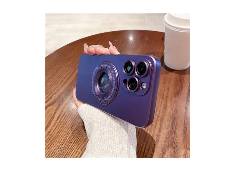 Para iPhone 15 Pro Max Suporte magnético Capa de telefone com moldura fosca para iPhone 11 12 13 14 15 Plus Capa protetora de lente, capa magnética roxa, para 15 Pro Max