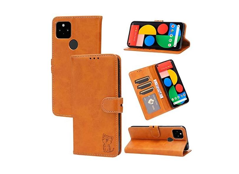 @#@Para o Google Pixel 5A 5G Gravado Happy Cat Padrão Horizontal Flip Capas De Couro Com Holder & Cart Slots & Carteira@#@