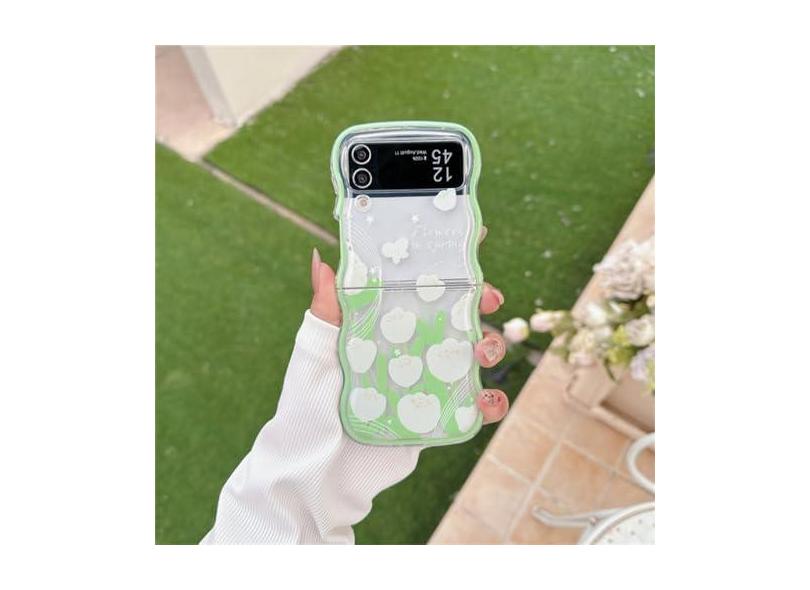 para Samsung flip5 capa de pulseira de flor de desenho animado para Samsung Galaxy Z Flip 5 4 3 ZFlip Flip4 capa transparente com corrente de pulso, YJX, para Samsung Z Flip 5