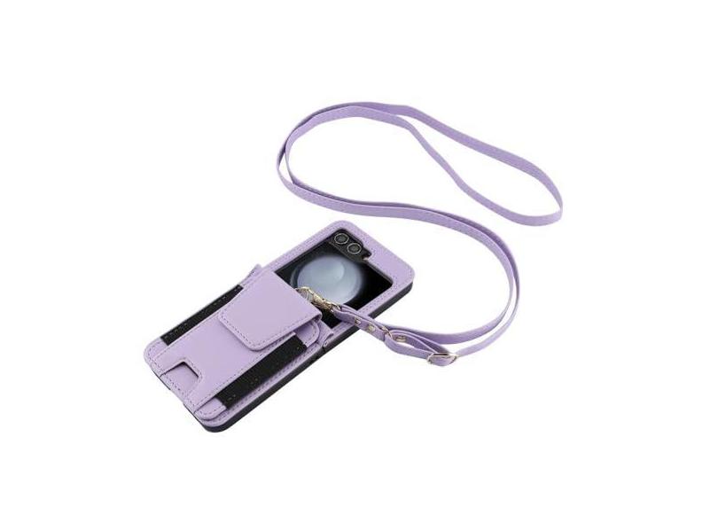Para Samsung Galaxy Z Flip 5 4 3 Flip5 Flip4 Flip3 Capa de telefone crossbody com suporte para cartões de proteção de dobradiça capa de couro, roxo claro, para Galaxy Z Flip3 5G