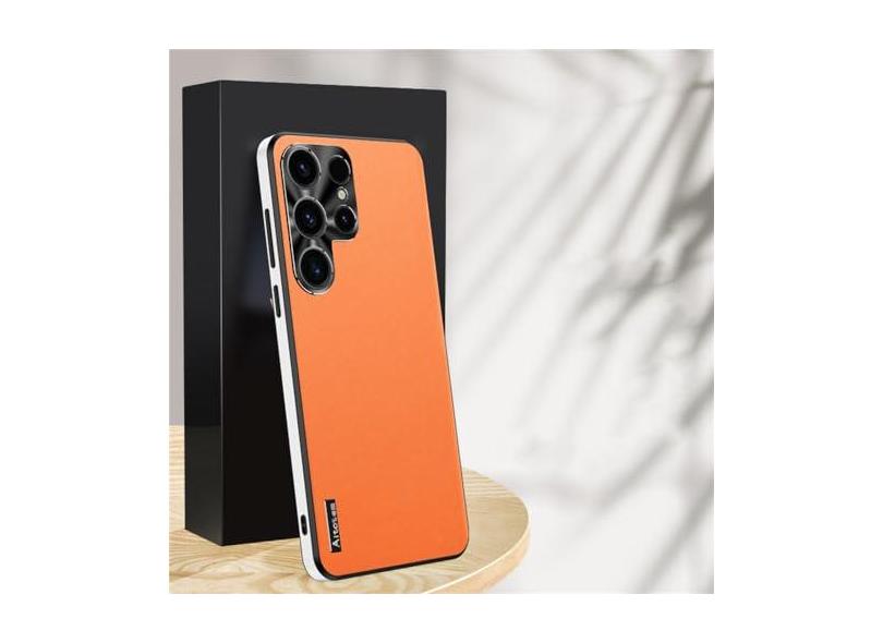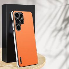 Para Samsung S24 Ultra Capa de couro liso fosco para S21 S22 S23 S24 ULTRA com moldura protetora de lente Capa de borda em TPU, laranja, para S23 Ultra