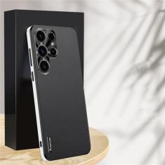 Para Samsung S24 Ultra Capa de couro liso fosco para S21 S22 S23 S24 ULTRA com moldura protetora de lente Capa de borda em TPU, preta, para S23 Plus