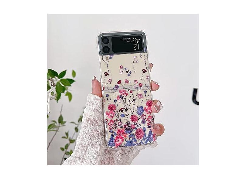 Para Samsung Z Flip 4 Case Floral Transparente Folding Phone Case com Pulseira Para Samsung Z Flip 3 5G ZFlip4 Hard PC Back Cover, b, Para Z Flip 3