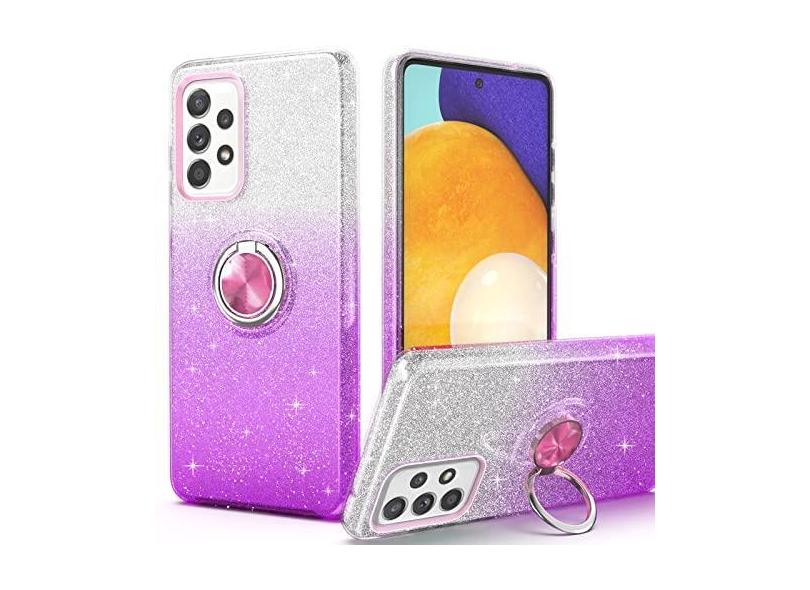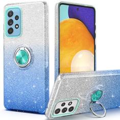 PeeTep Capa para Galaxy A52 5G para meninas e mulheres, capa fina com glitter brilhante com suporte de anel de 360°, suporte magnético para carro, capa protetora resistente e absorvente de choque,