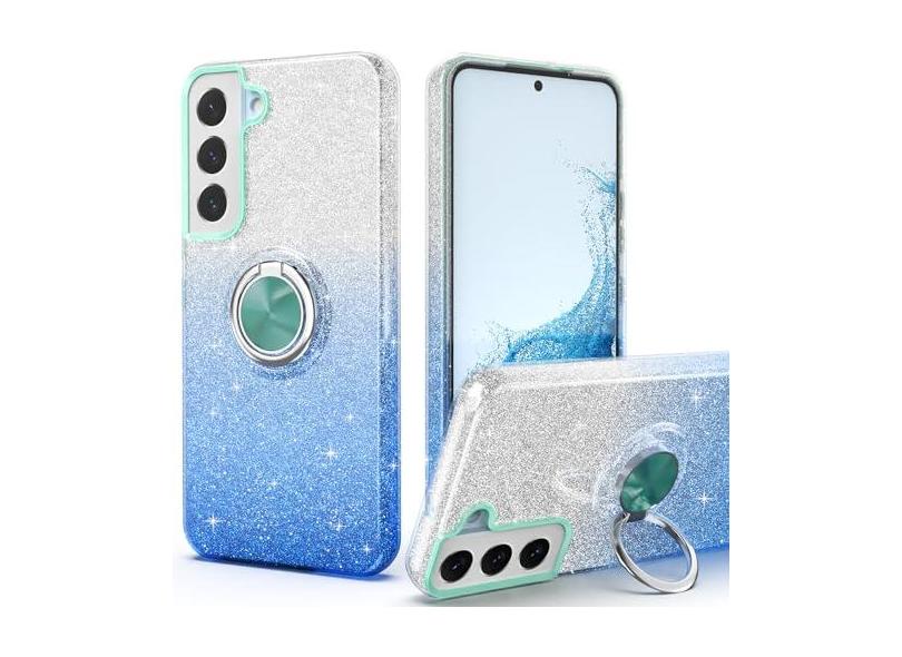 PeeTep Capa para Galaxy S22, Slim Fit Glitter Sparkly Case com suporte de anel de 360° Suporte magnético para carro capa protetora durável absorvente de choque para Galaxy S22 15.5 cm para meninas e