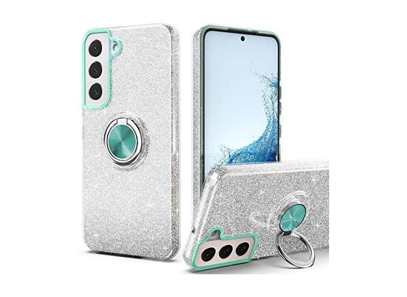 PeeTep Capa para Galaxy S23, Slim Fit Glitter Sparkly Case com suporte de anel de 360° Suporte magnético para carro capa protetora durável absorvente de choque para Galaxy S23 15.5 cm para meninas e
