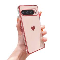phylla Capa de telefone compatível com Google Pixel 9 Pro XL 5g com revestimento de luxo fofo amor coração lateral pequena padrão capa de proteção total para câmera de silicone macio à prova de choque