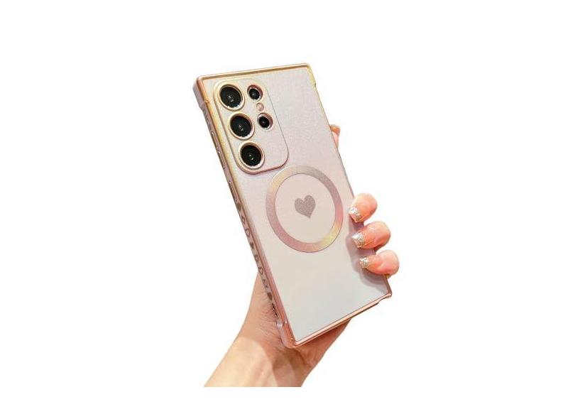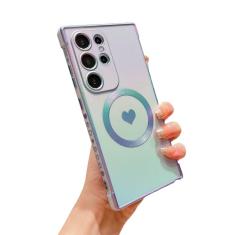 phylla Capa de telefone magnética para Samsung Galaxy S24 Ultra 5g luxuosa banhada a laser iridescente coração fofo capa protetora a laser compatível com MagSafe macia à prova de choque lateral