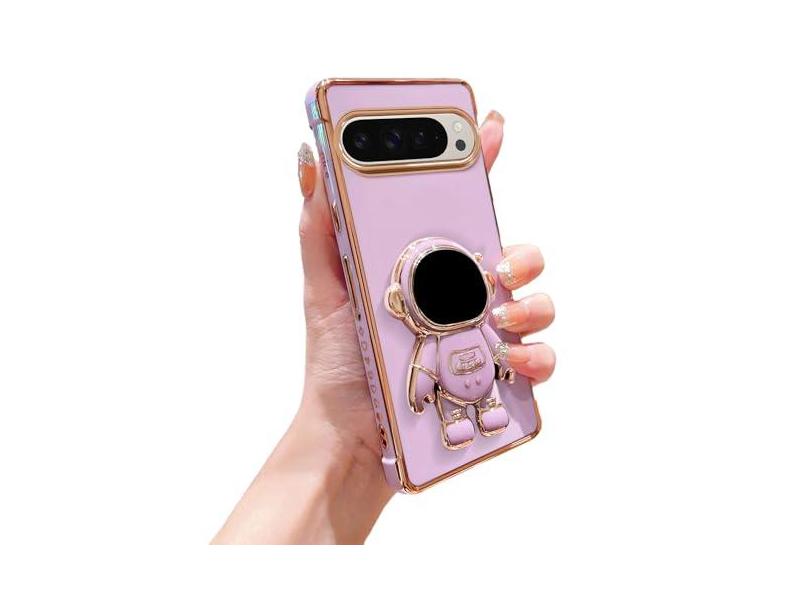 phylla Capa de telefone para Google Pixel 9/9 Pro 5g, capa de telefone com suporte de astronauta de luxo com lindo coração de amor lateral padrão pequeno de silicone macio à prova de choque capa