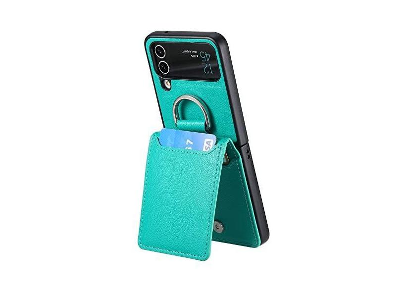 Porta-anel magnético carteira de couro para cartões Solt Case para Samsung Galaxy Z Flip 4 Flip4 Flip3 5G Zflip4 Kickstand Capa vertical, verde, para Samsung Z Flip 3