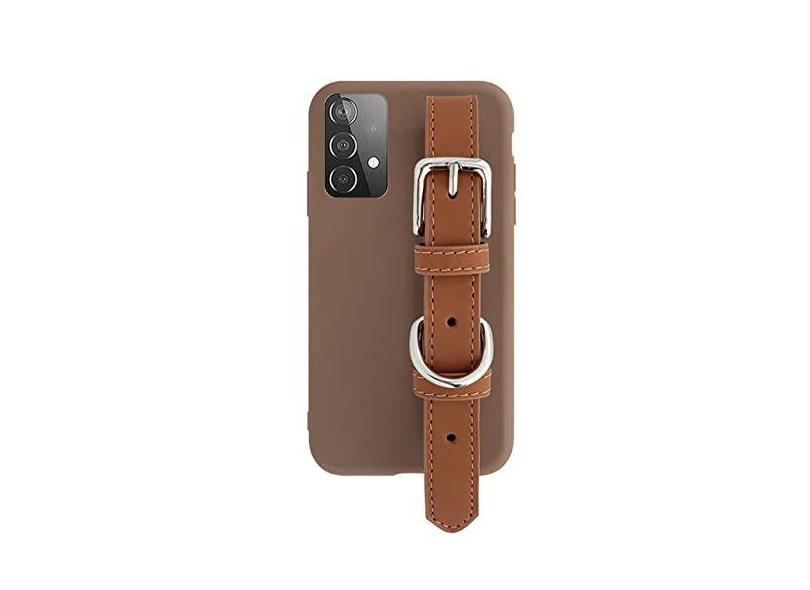 Pulseira de couro capa de silicone para Samsung Galaxy A13 A23 A33 A53 A73 4G 5G Capa fosca para telefone de pulso, castanho-avermelhado, para A13 5G