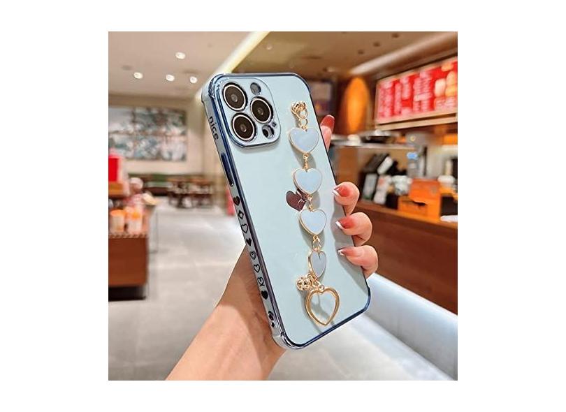 Pulseira macia amor coração capa de telefone para iphone 11 12 13 pro max xs x xr 7 8 plus mini se 2020 galvanizado pára-choques capa traseira, céu azul, para iphone 12pro max