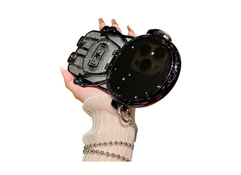 QoKcoahn Capa de telefone com suporte oculto astronauta para iPhone 14 Plus, linda lente de astronauta 3D, suporte de proteção para câmera, luxuoso, brilhante, macio, protetor de TPU com corrente de