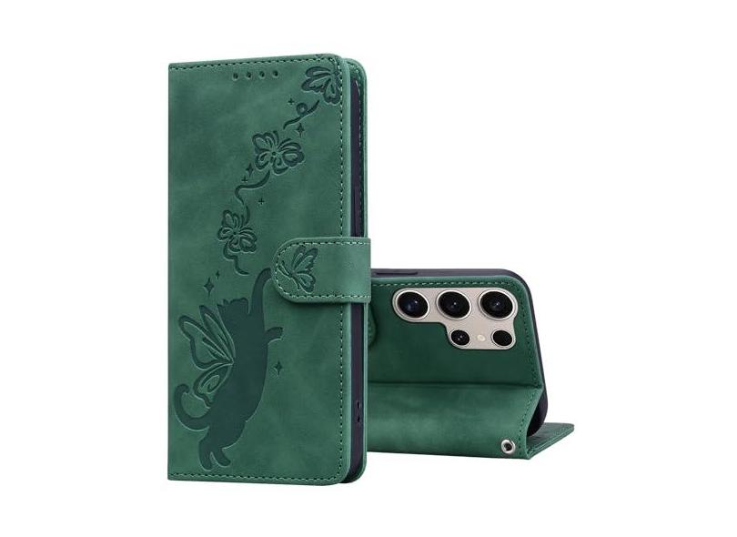 Refilerss Capa carteira para Samsung Galaxy S24 Ultra, capa flip de couro premium com suporte para cartão, fecho magnético, borboleta, padrão de gato, suporte à prova de choque, capa protetora para