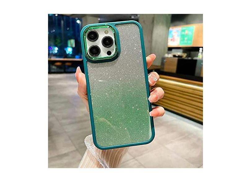 Revestimento brilhante brilhante Bling Clear 2 em 1 capa de telefone de borda macia para iphone 14 13 12 11 Pro Max Plus capa traseira acrílica fosca, verde, para iPhone 13