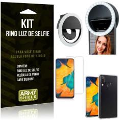 O menor preço encontrado no Brasil para Ring Luz de Selfie Samsung Galaxy A20 Flash Ring + Capa Silicone + Película Vidro - Armyshield atualmente é R$ 59,90.