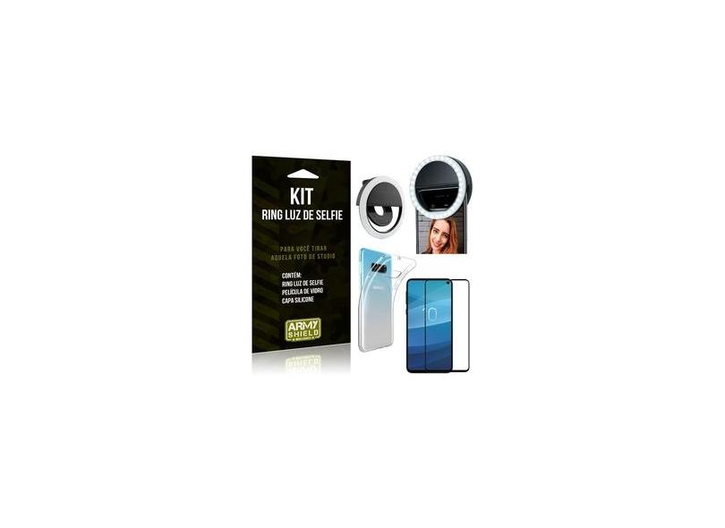 Ring Luz de Selfie Samsung Galaxy S10e Flash Ring + Capa Silicone + Película Vidro - Armyshield