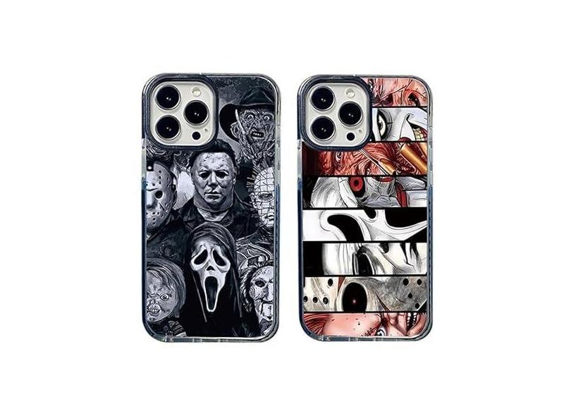 RSMACH [2 pacotes] Capa de celular transparente de filme de terror, máscara de Halloween, homem, careta, terror para meninos e meninas, adolescentes, capa protetora à prova de choque para iPhone 15