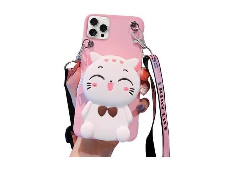 SGVAHY Capa carteira para iPhone 11 linda capa para iPhone 11 com alça cordão bolsa de moedas, capa de telefone engraçada Kawaii, silicone macio, à prova de choque, capa para iPhone 11 para mulheres e