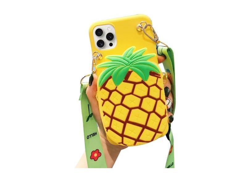 SGVAHY Capa carteira para iPhone 15 Pro, capa fofa para iPhone com alça de cordão, capa de telefone engraçada, porta-cartões, kawaii, macia, à prova de choque, capa protetora para mulheres e meninas