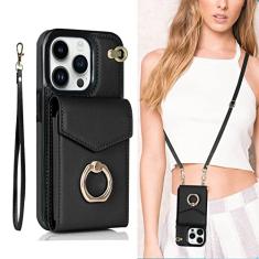 SINQERISHT Capa tipo carteira transversal para Apple iPhone 13 Mini capa de couro com suporte para cartão de crédito e anel de 360° e alça de pulso, capa de bolsa, fecho magnético, capa flip para