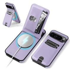 SkyEagle Capa carteira compatível com Magsafe para Google Pixel 9 Pro XL com suporte para cartão, com bloqueio de RFID, compartimentos para cartões de crédito, couro PU, homens e mulheres, para Pixel